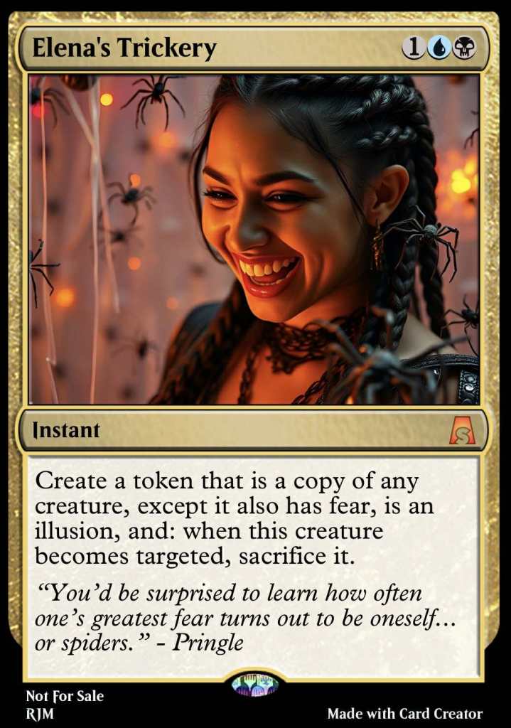 Powers: Elena enjoys her strain of magic a little too much. She is very good at teleporting, but her specialty is her array of vivid illusions. Most times, her images are so convincing that they invoke actual reactions; a cold room can feel like a blistering heat wave, or the image of oneself that crawls out of the mirror actually grabs its original’s actual throat. A favourite that never fails her is an explosion of spiders that no one to date can’t still feel crawling all over them long after the spell is cancelled.