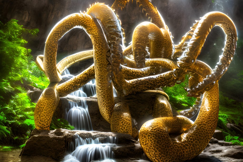 While standard hydra heads connect to a brain in the body, the Flatwurm Hydra has its knowledge and memories distributed throughout. Although this limits their intelligence, it bolsters their regenerative capabilities. When a head is severed, a new one is grown, but unlike other subspecies, the severed head will also generate a new body that is, up until this point, an exact twin. The older any Hydra is the faster it regenerates, to the extent that cuts are healed around whatever severs them, although with a Flatwurm, this is not beneficial, so the initial cut is almost always allowed to pass. Since they are smaller than their cousins, the easiest way to end one is by crushing the creature with something that will cover the entire body, which thankfully in most cases, is a large boot.